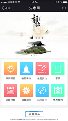 整合线上线下殡葬服务模式,提供一条龙的殡葬o2o服务模式。通过筛选在每个适合的城市选定一定数量的优质服务商,为客户提供标准化的服务套餐。服务完成之后客户通过平台的评分和投诉系统给商家打分,并设置更多这样的机制来监管服务商家。达到服务商全心全意为客户服务目的。
